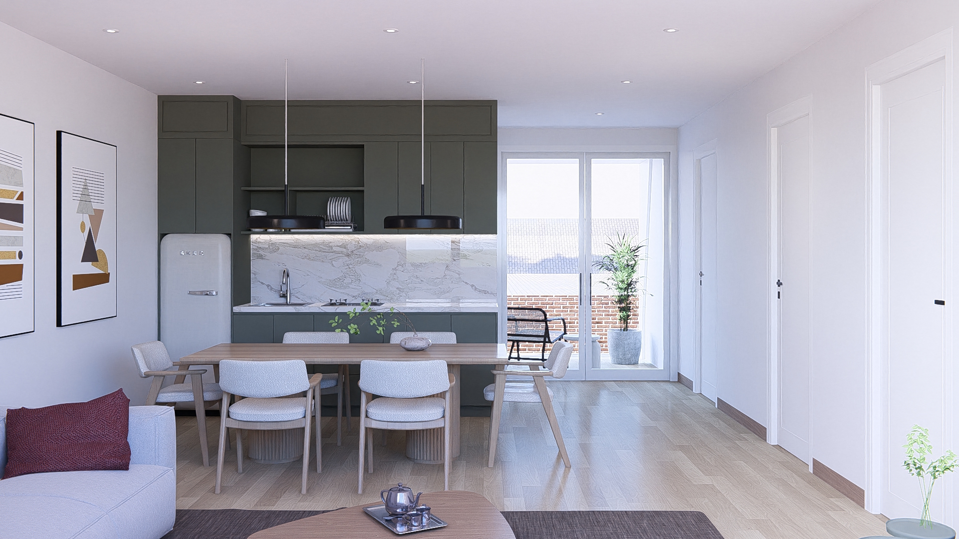 Hier worden zes duurzame appartementen gerealiseerd met een woonoppervlakte tussen de 49 en 64 m2 woonoppervlakte. Drie appartementen zijn gelegen op de begane grond en beschikken naast 2 slaapkamers ook over een eigen patio-tuin. Op de eerste verdieping zijn 3 appartementen gelegen en deze beschikken allemaal over een eigen balkon. Het middelste appartement beschikt standaard over twee slaapkamers en bij de andere twee appartementen is een tweede slaapkamer optioneel. De woningen voldoen aan de laatste eisen. Deze zijn dus zeer goed geïsoleerd, zowel wat betreft warmte, maar ook wat betreft geluid. Daarnaast beschikken alle appartementen over een eigen warmtepomp in combinatie met vloerverwarming.