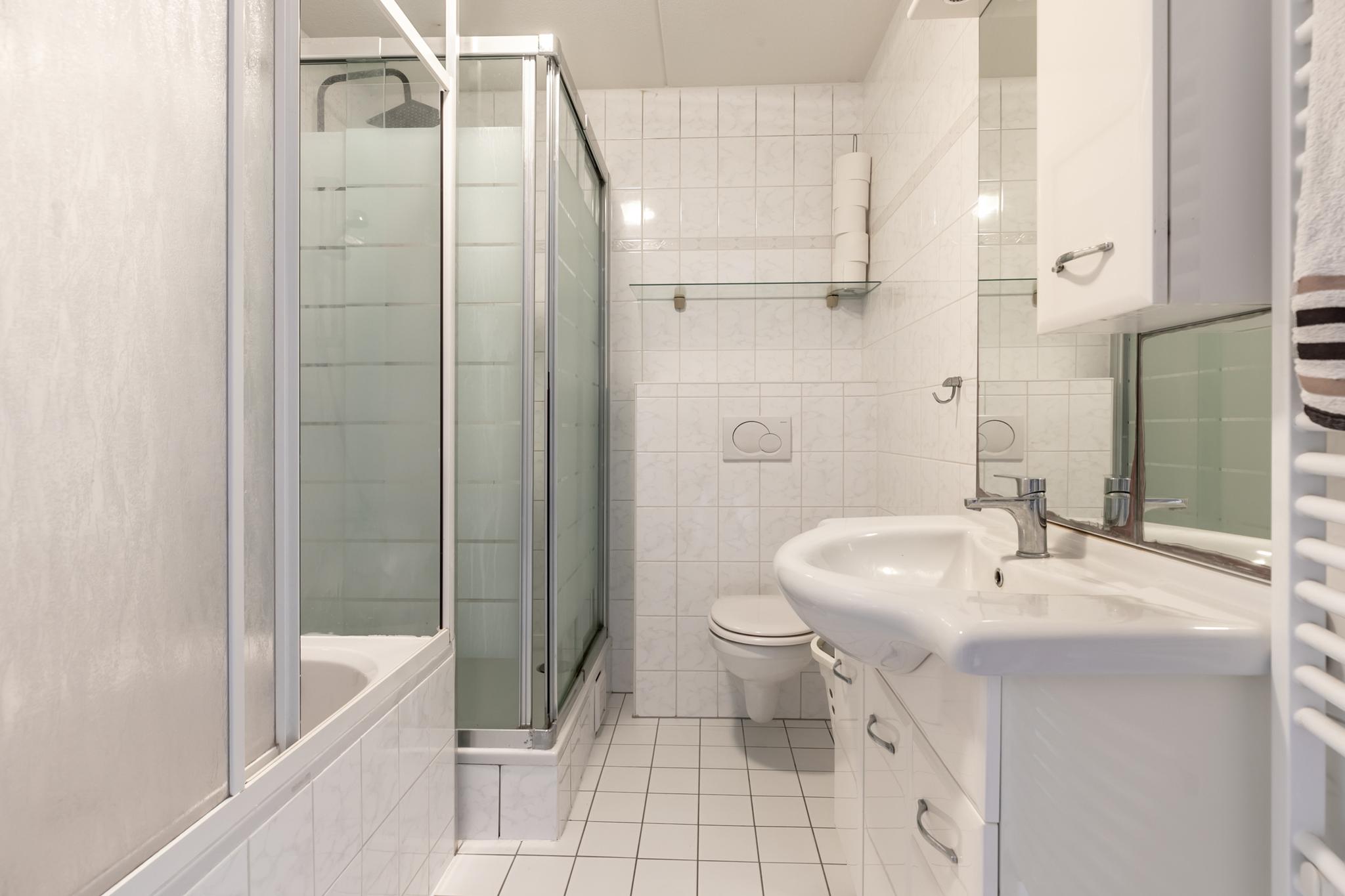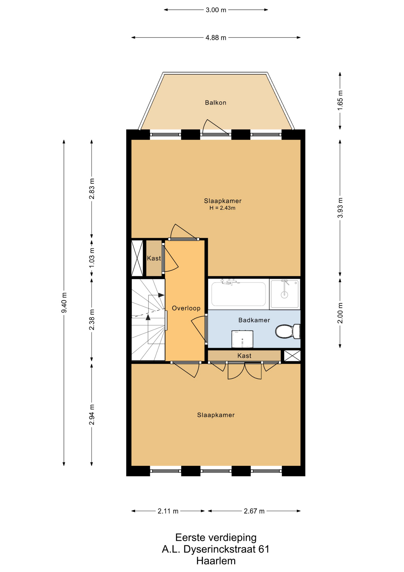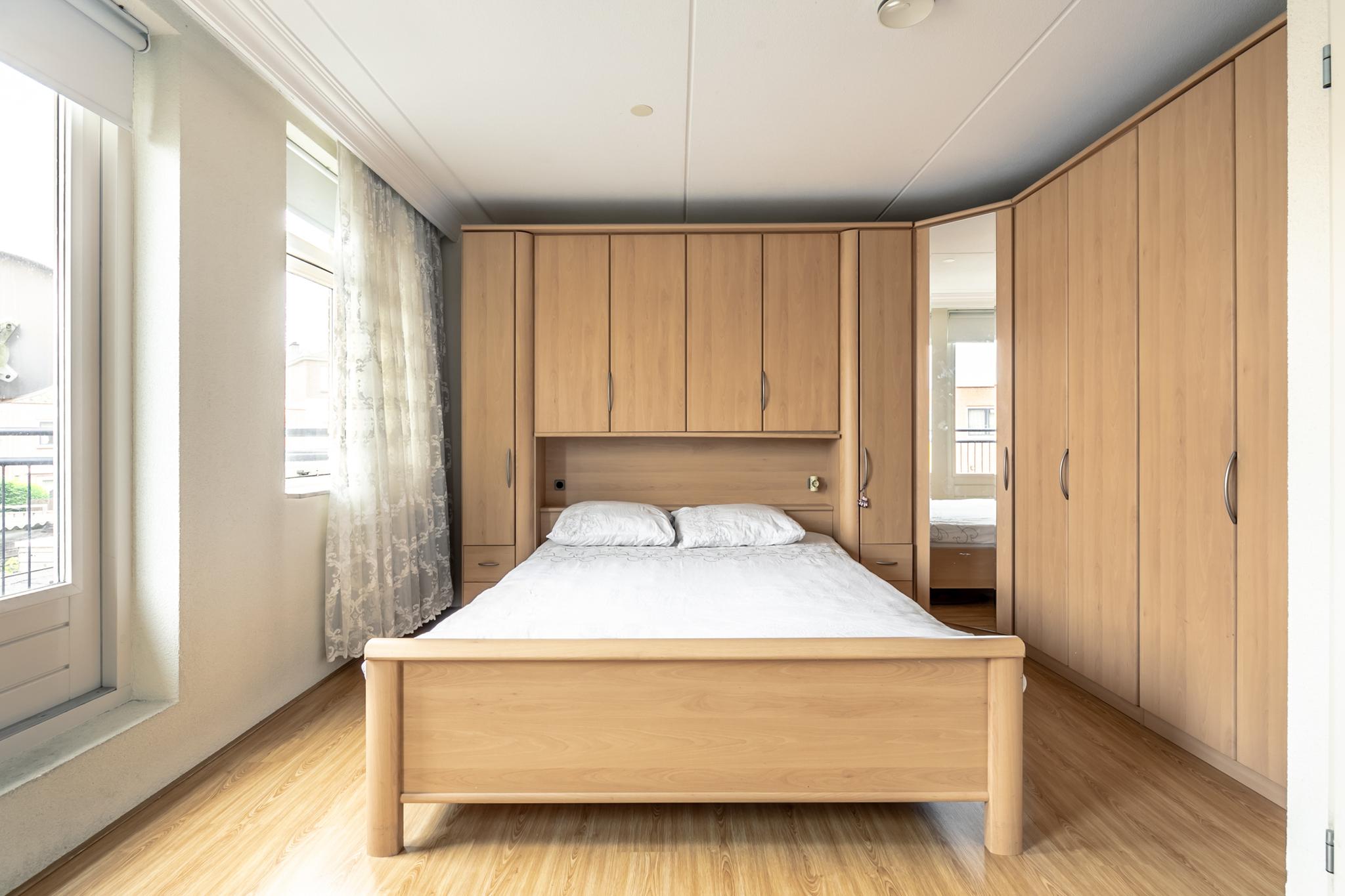 Eerste verdieping: overloop, vaste kast, ruime slaapkamer aan de voorzijde, badkamer voorzien van toilet, ligbad, douche en wastafel, ruime slaapkamer aan de achterzijde met balkon.
