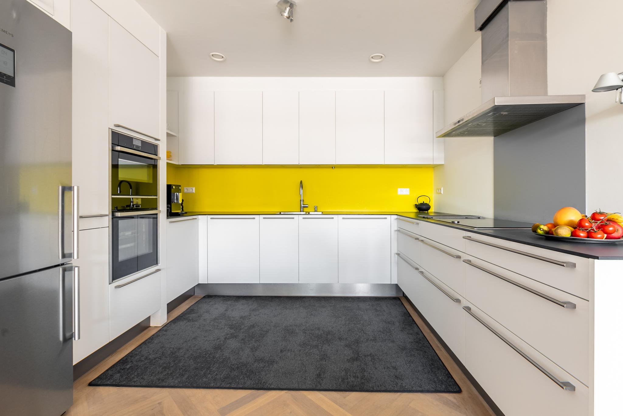 Dit moderne appartement (2018) bevindt zich op de derde verdieping van een stijlvol wooncomplex en biedt maar liefst ca. 163 m2 woonoppervlakte. De ruime en lichte woonkamer met open keuken vormt het hart van de woning. Dankzij de grote raampartijen en het balkon aan de voorzijde, geniet je hier van een prachtig uitzicht op de groene en sfeervolle binnentuin, wat tevens een fijne ontmoetingsplek is voor bewoners.