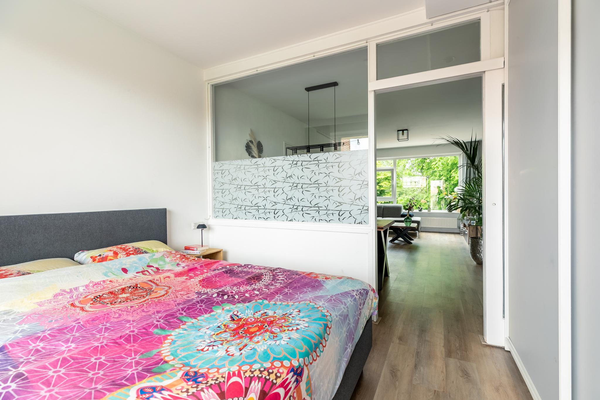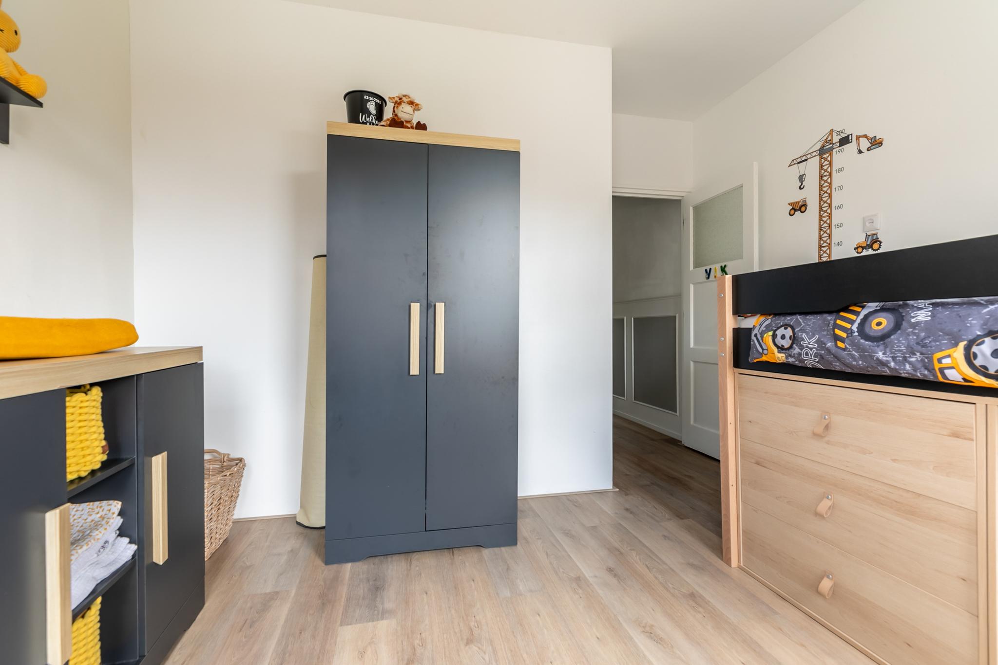 Tot slot is er een ruime hoofdslaapkamer aan de achterzijde, eveneens voorzien van een moderne pvc-vloer. Ook deze kamer biedt toegang tot het achterbalkon, zodat je hier direct de frisse lucht op kunt zoeken.