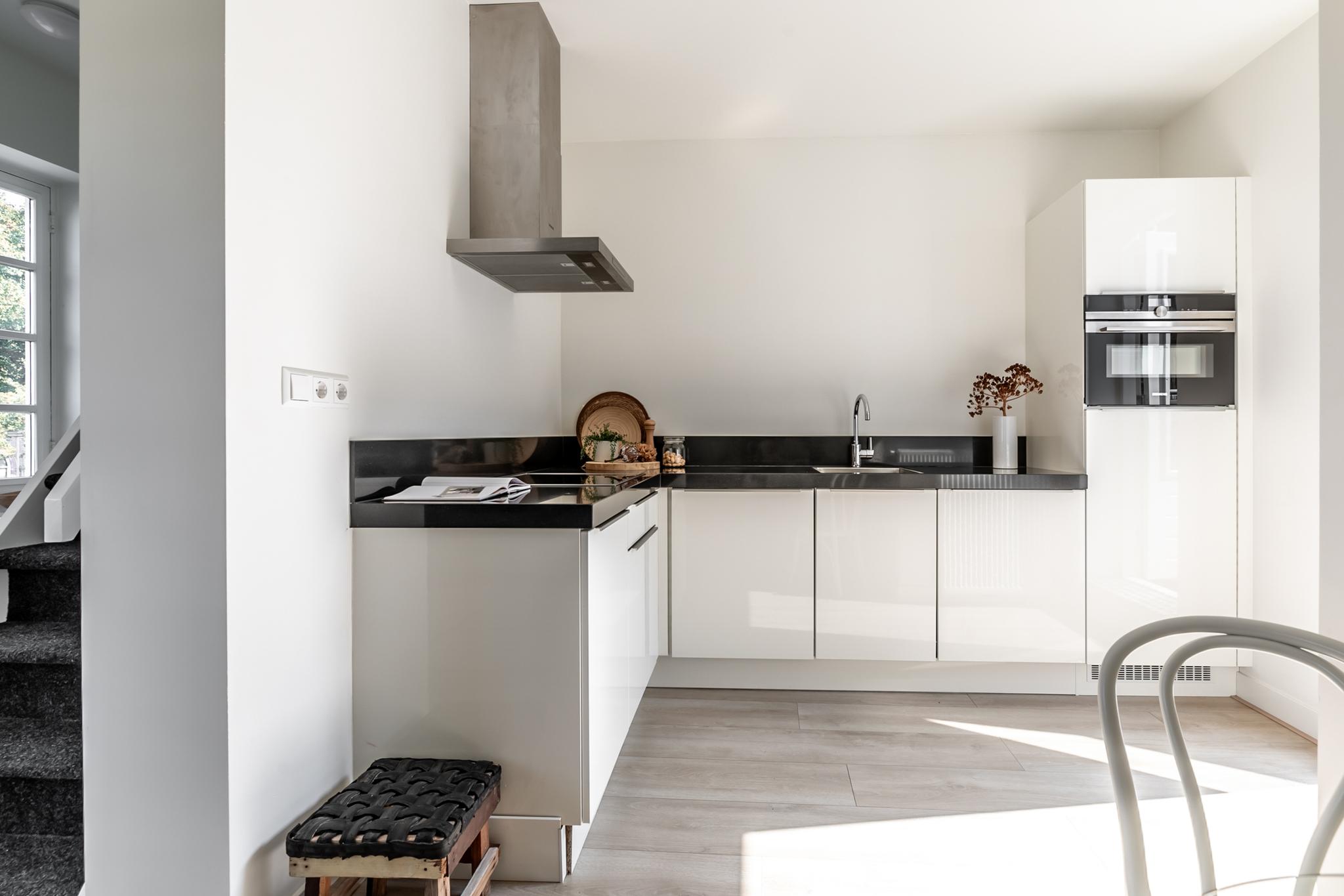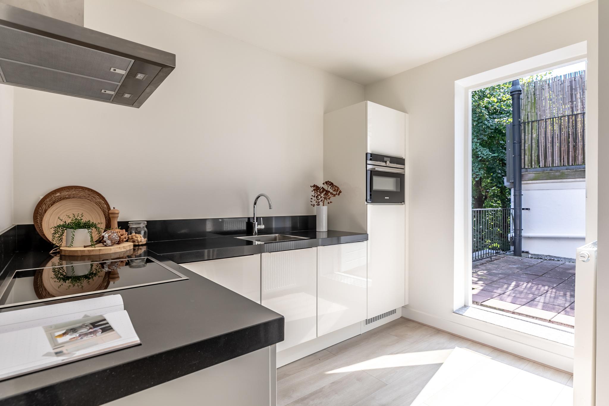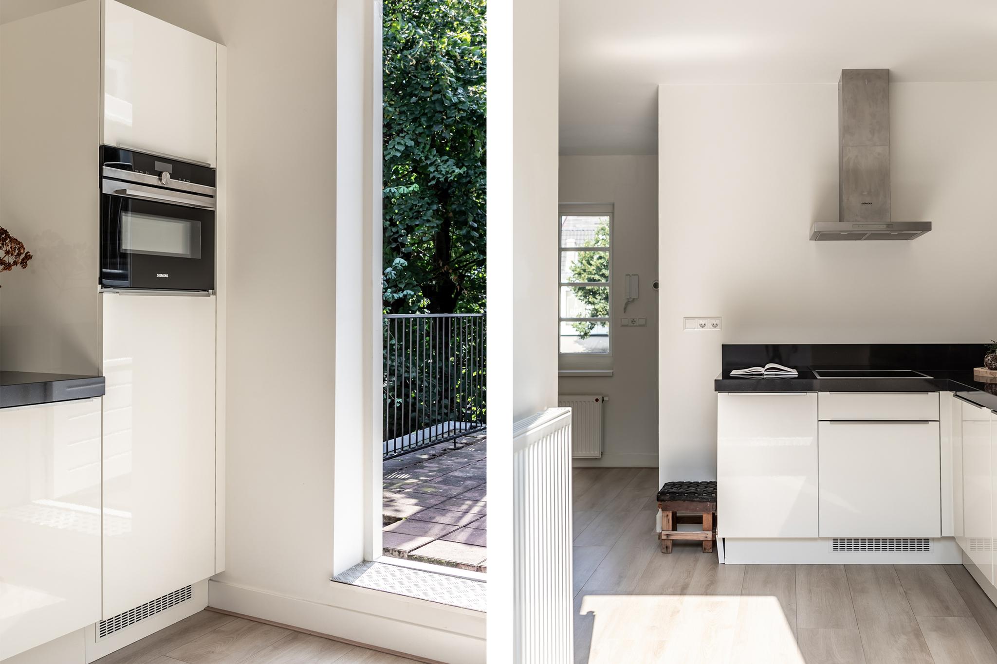 Hier treft u de ruime en lichte woonkamer, met grote ramen die het licht binnen laten stromen. De open keuken, volledig uitgerust met Siemens inbouwapparatuur, biedt veel kastruimte en is een ideale plek om te koken. Via de keuken heeft u toegang tot het zonnige dakterras op het zuiden, waar u heerlijk kunt ontspannen.