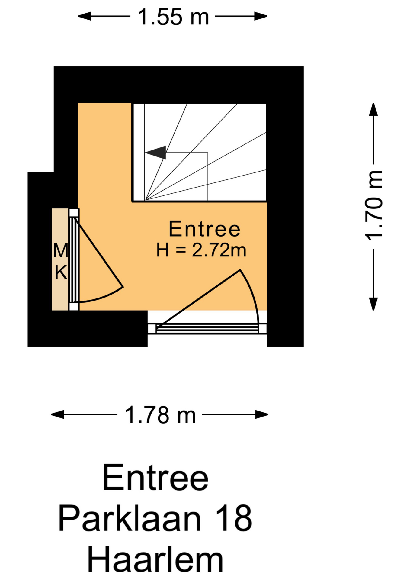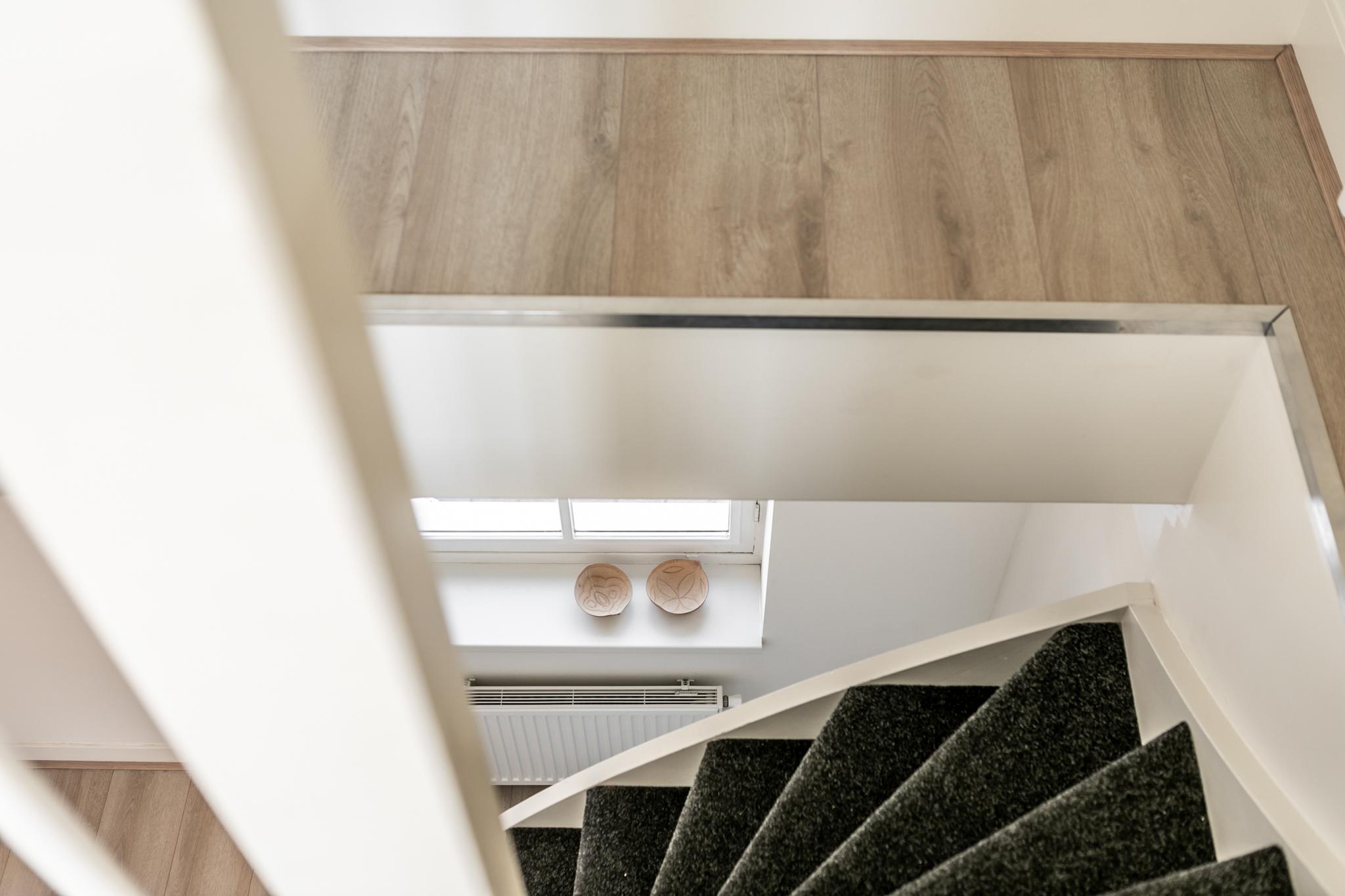Bij binnenkomst via de voordeur bevindt zich een kleine hal die leidt naar de trap naar de eerste verdieping.