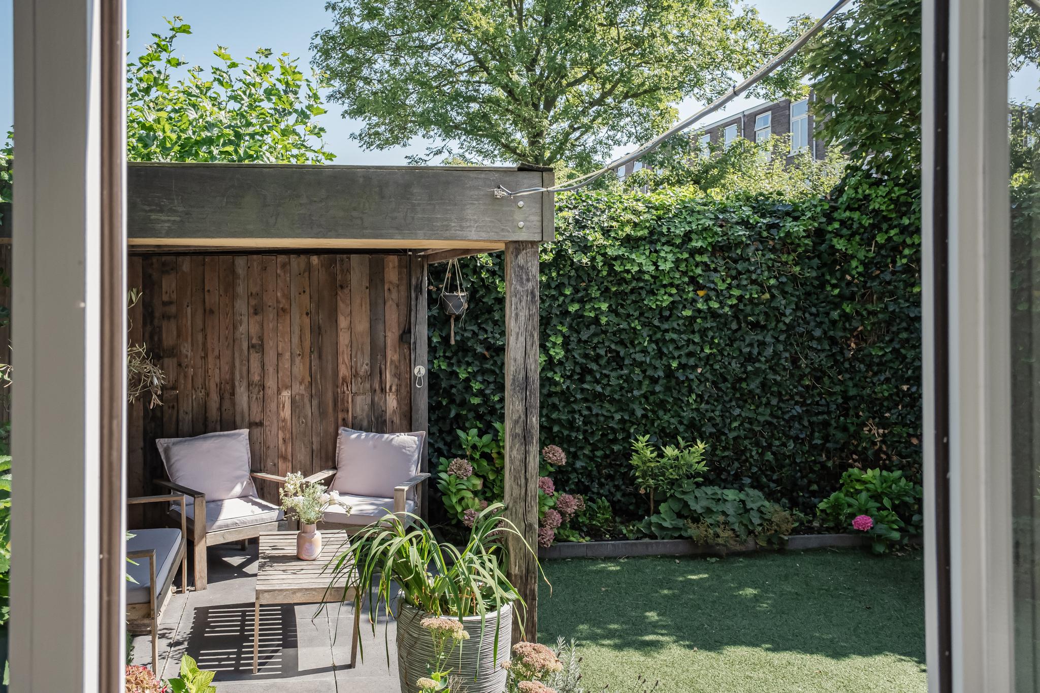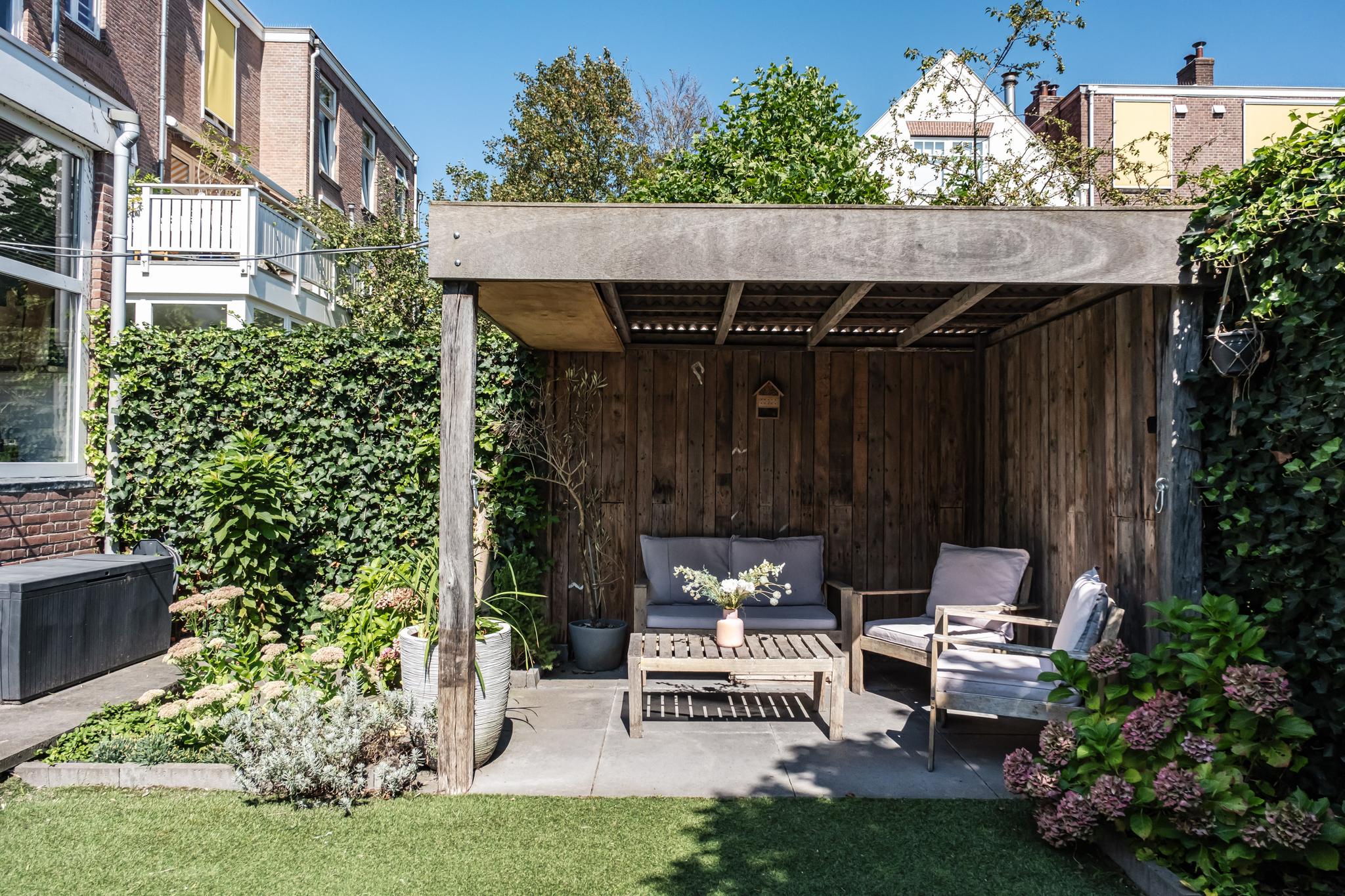 Voortuin met besloten zitje.