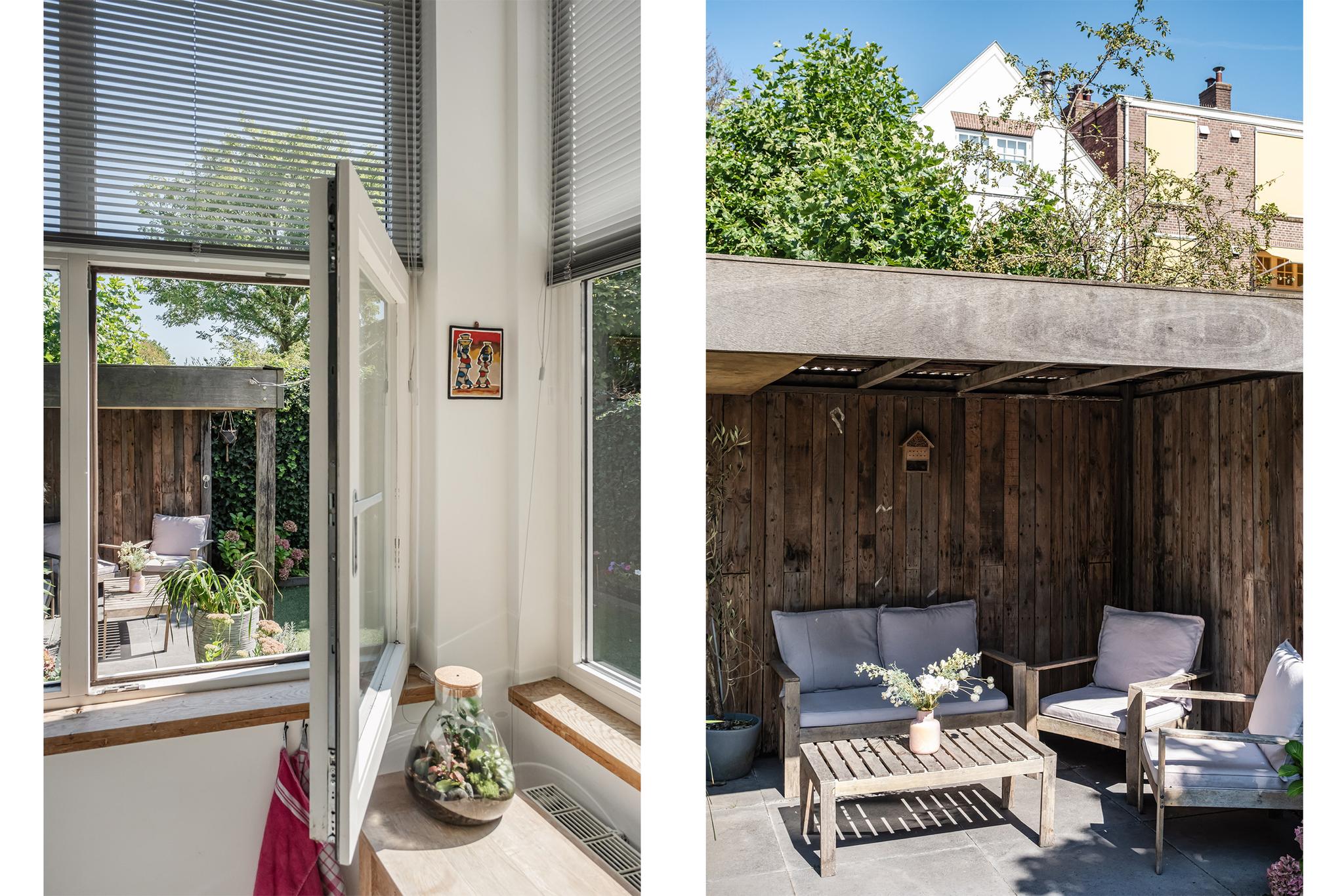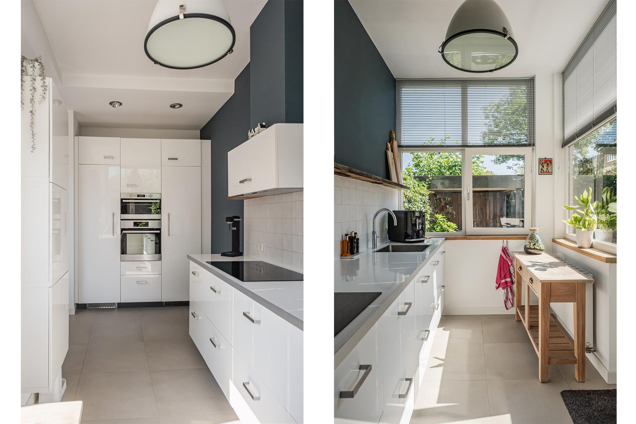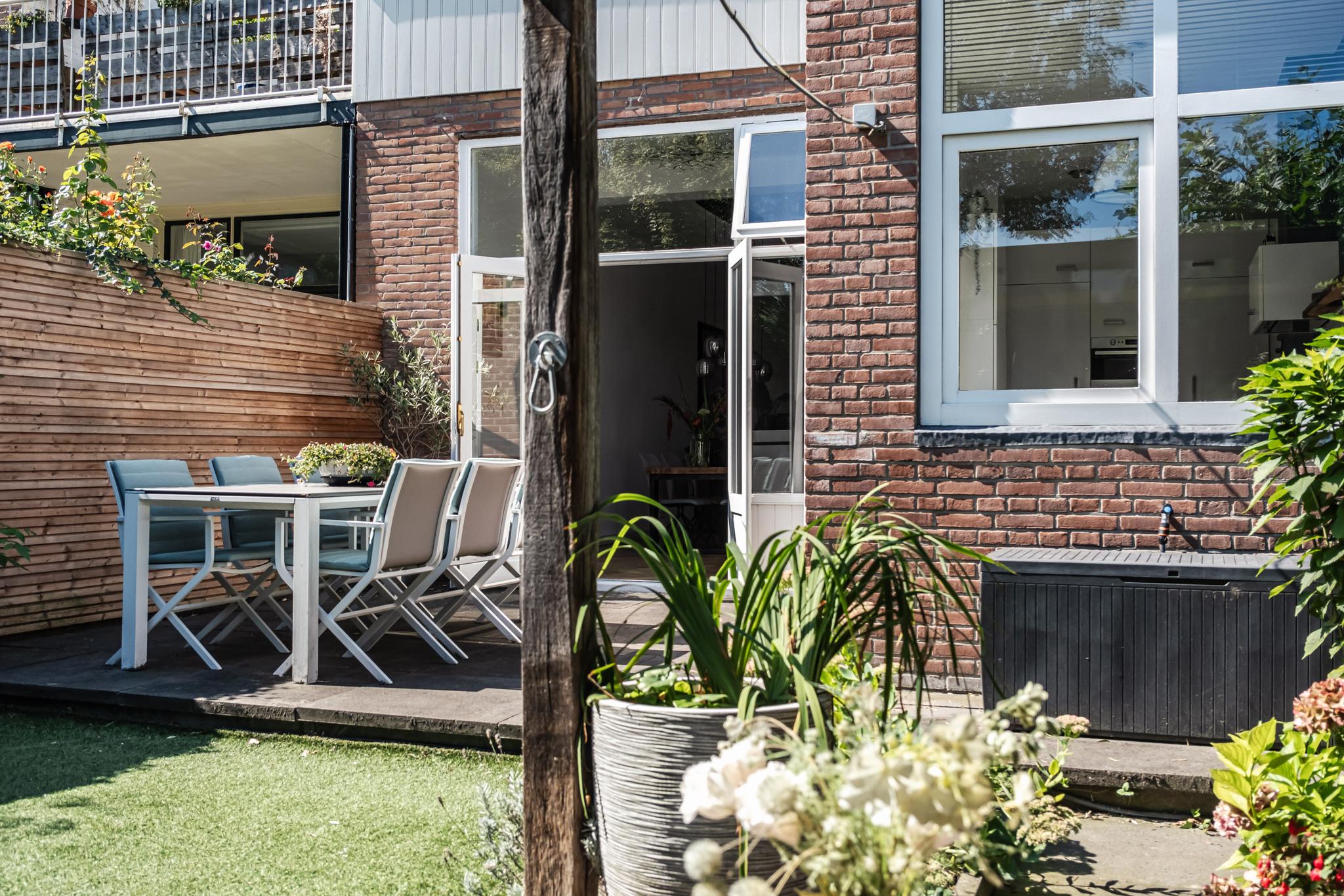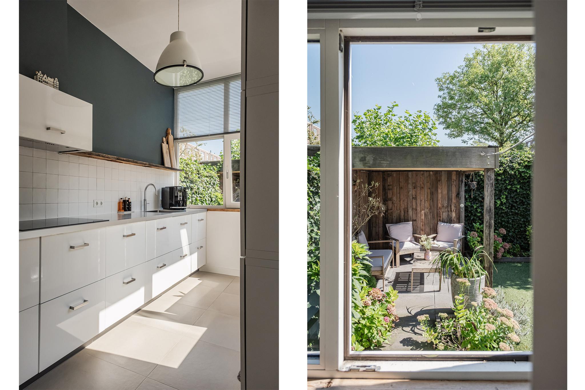 De keuken geeft toegang tot de fijne, zonnige achtertuin met terras, (kunst)grasveldje en overdekt 2e terras. Vrij zicht naar achteren.