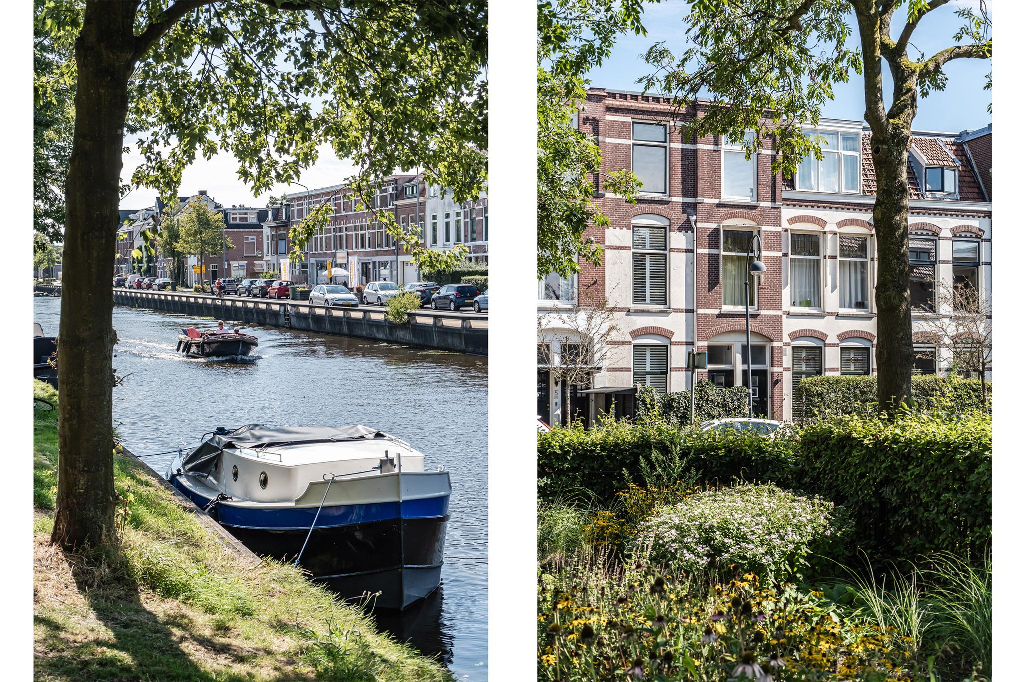 Hoge plafonds, een moderne keuken in de lichte uitbouw, modern sanitair. De grote ramen (ook met glas in lood) zorgen voor een overvloed aan licht en een fraai uitzicht aan de voorzijde over een parkje en de Leidsevaart.