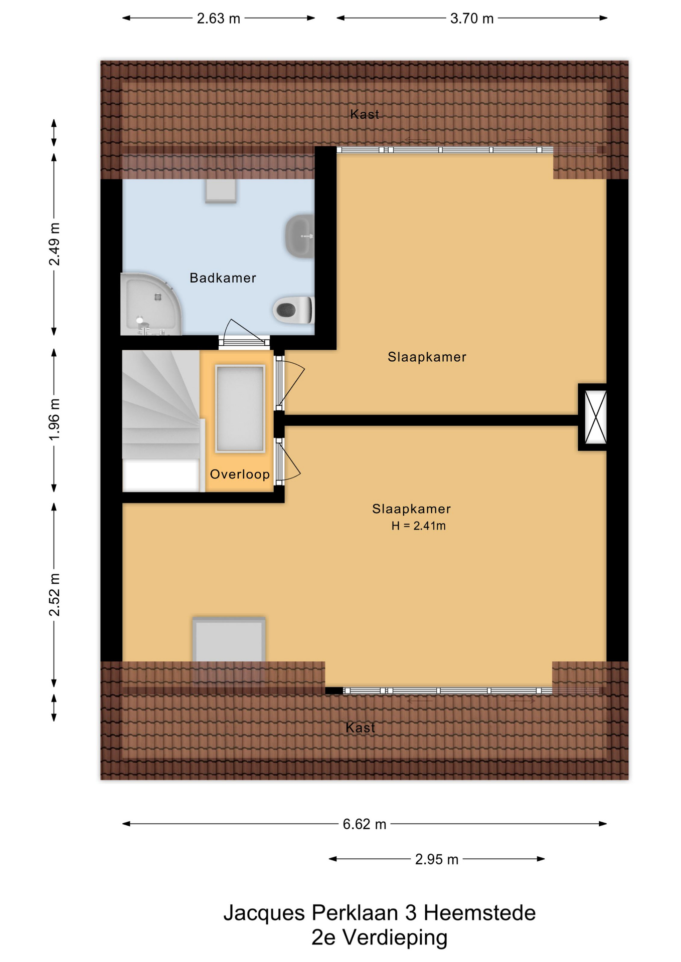 2e verdieping: Overloop, 4e en 5e slaapkamer, beide voorzien van een brede dakkapel. De 2e badkamer is voorzien van een douche met toilet, alsmede een aansluiting voor de wasmachine en droger.