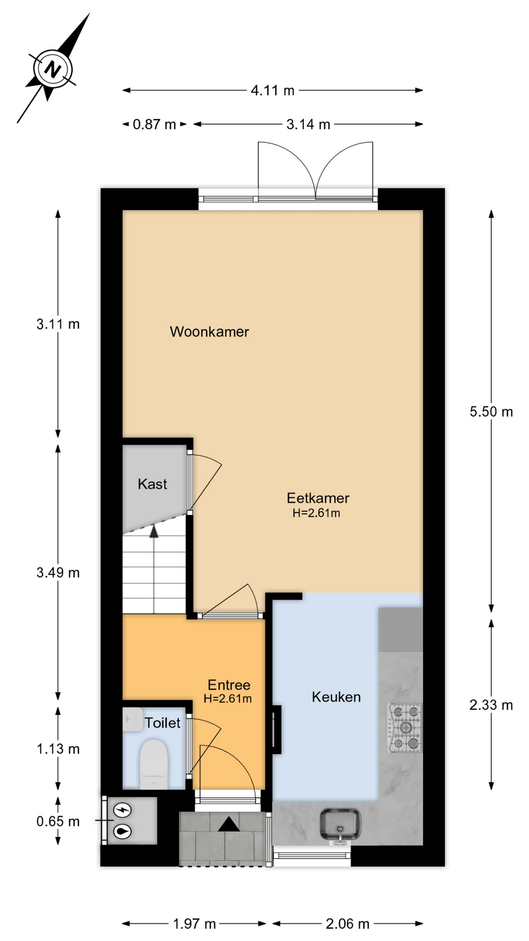 – Woonoppervlakte ca. 70m², inhoud 245m³, perceel 87m²