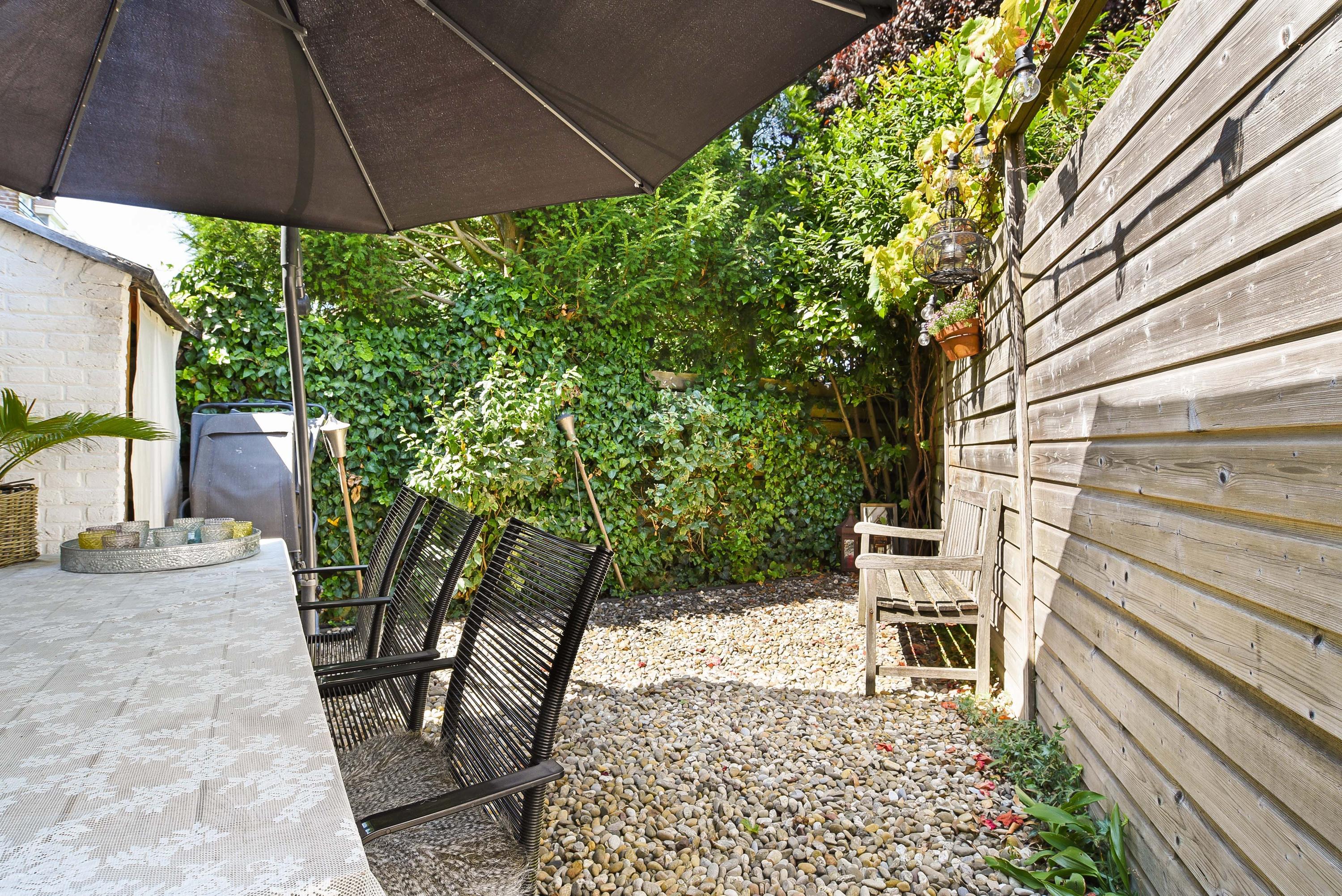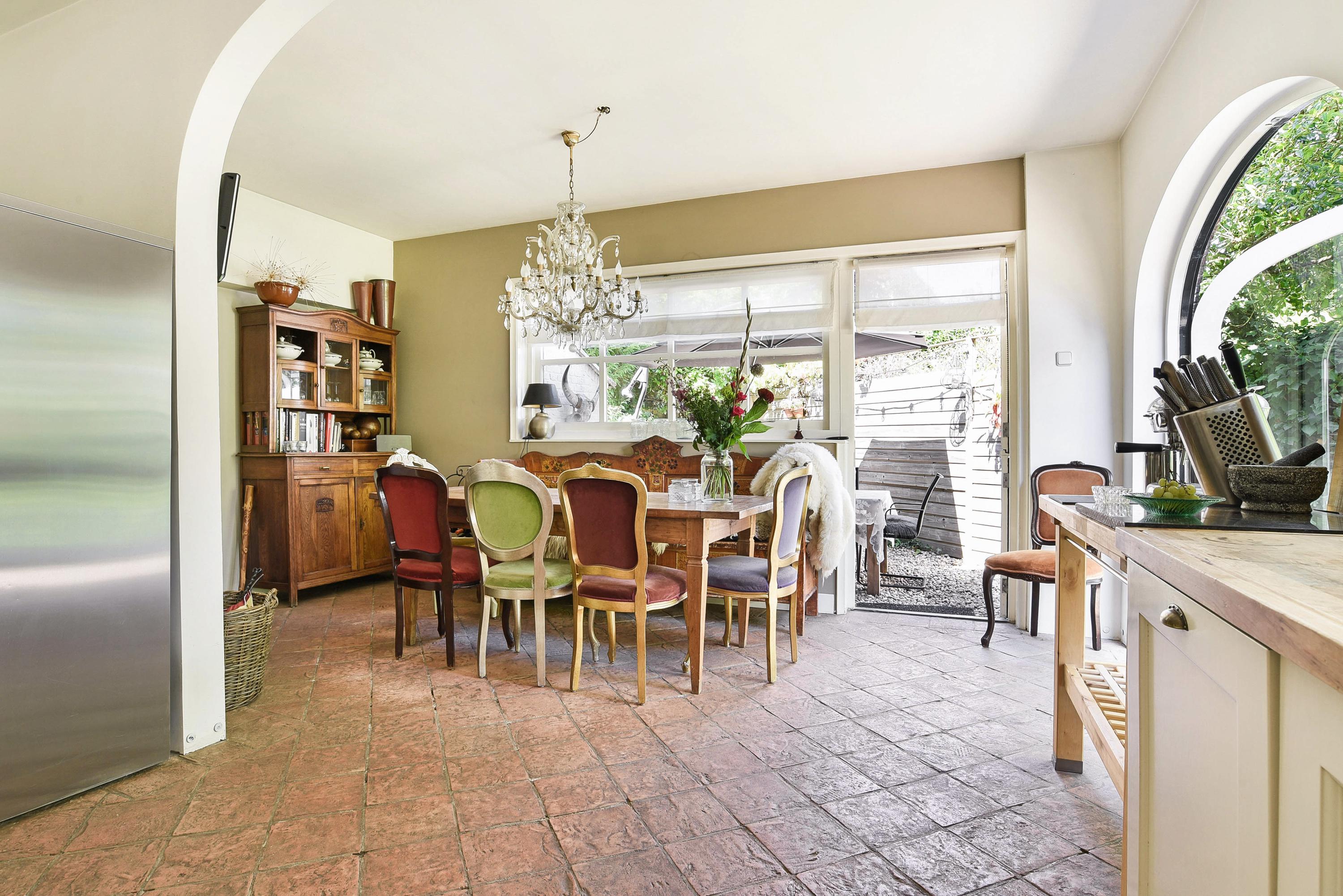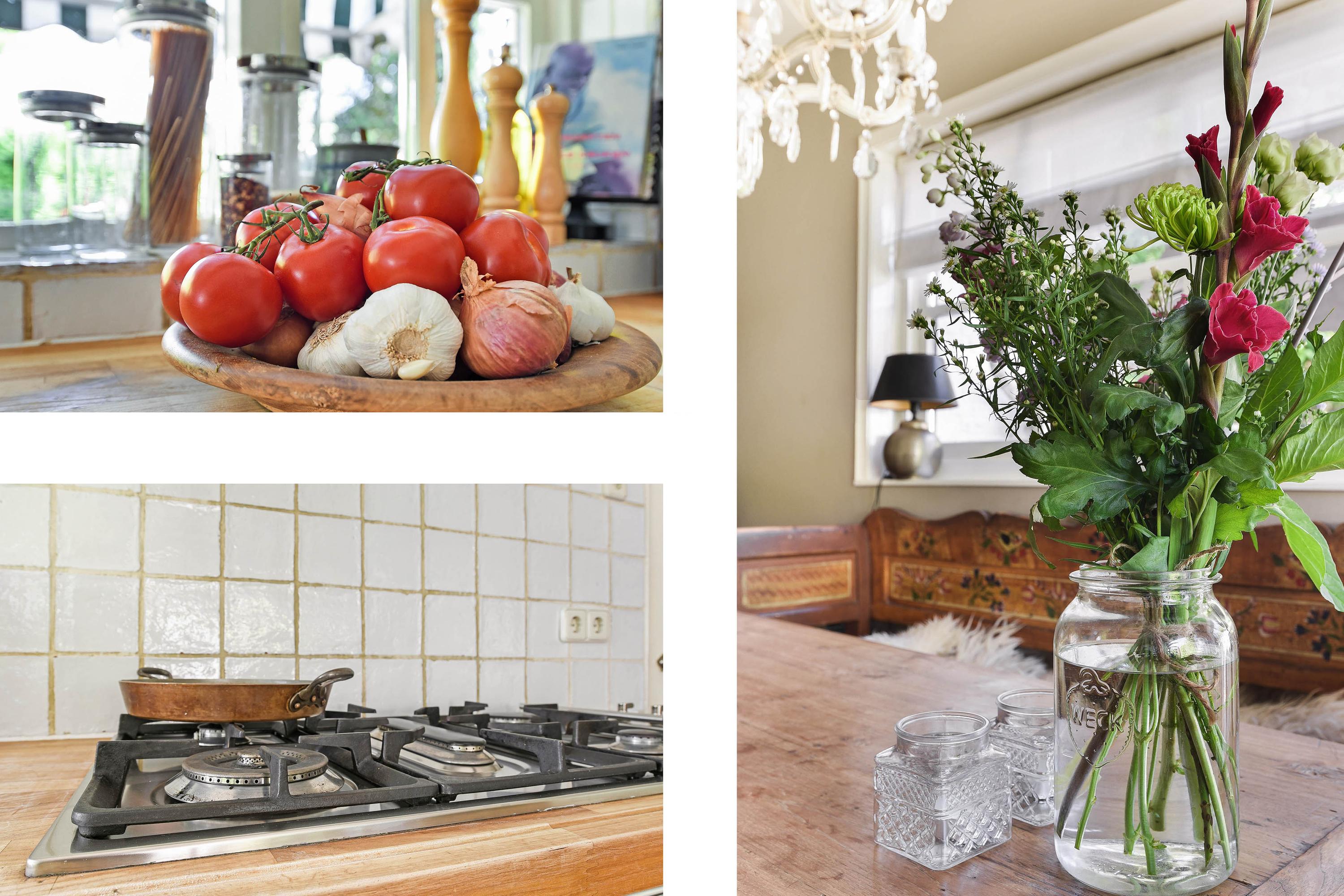 De gezellige woonkeuken vormt het hart van de woning en geeft toegang tot zowel de zonnige voortuin (zuiden) als de knusse, beschutte achtertuin. Binnen en buiten lopen op natuurlijke wijze in elkaar over, ideaal voor zowel zomeravonden als knusse winterdagen bij de open haard.