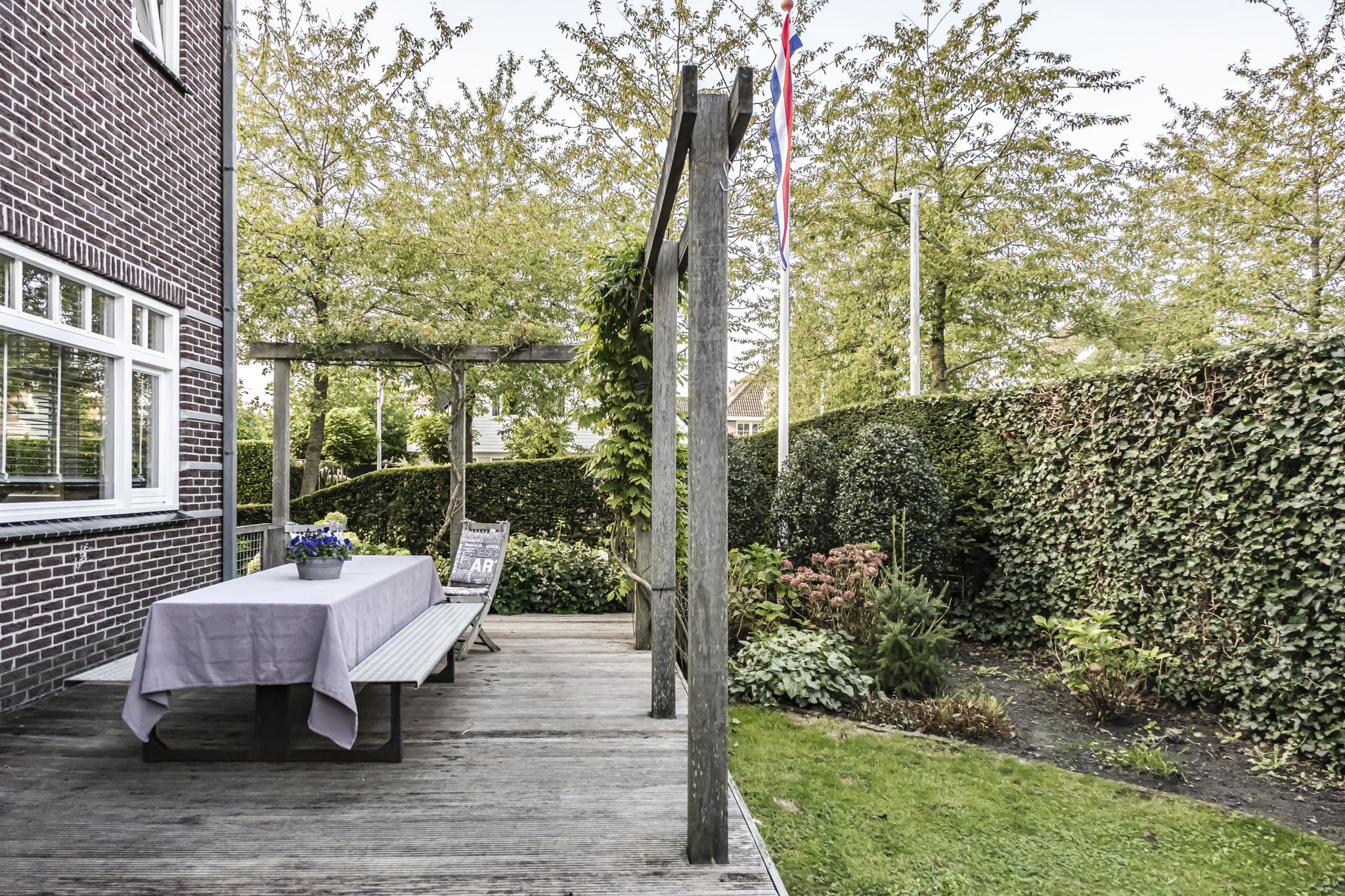 Aan de voorzijde grenst de woning aan een groen wandel- en fietspad. De zonnige tuin (op het zuiden) is voorzien van fraaie beplanting, waaronder een druivenstruik, pruimen- en perenboom. Er zijn meerdere terrassen en een stenen pizzaoven: een heerlijke plek om te ontspannen of om gezellig te dineren met het gezin. Als kers op de taart is er een dubbele garage met elektrische deuren en twee parkeerplekken op eigen terrein.
