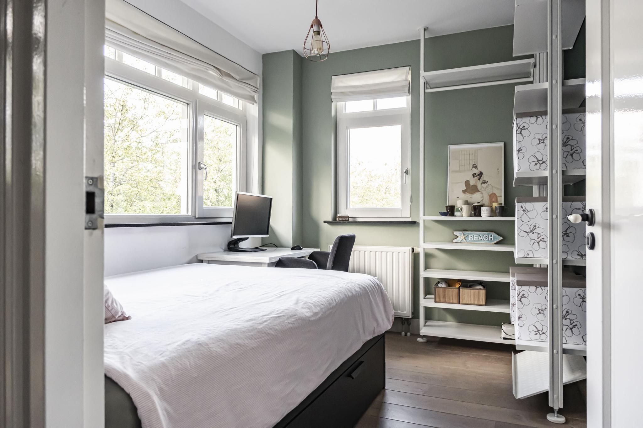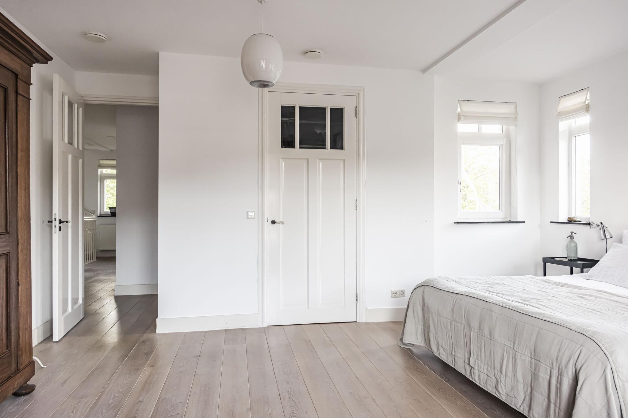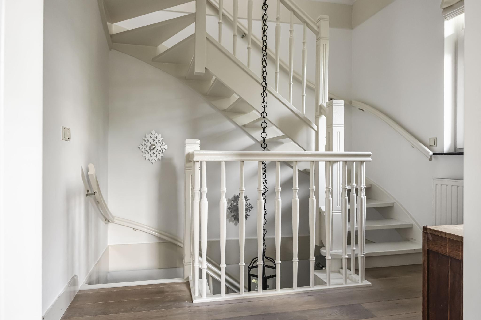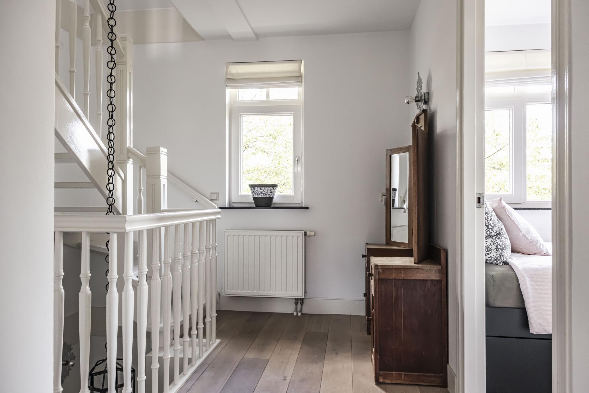 1e verdieping: ruime overloop, 1e slaapkamer aan de voorzijde met ramen aan twee zijden en uitzicht op het groene wandelpad, 2e slaapkamer aan de achterzijde voorzien van Frans balkon, 3e slaapkamer c.q. master bedroom met sfeervolle raampartijen en inloopkast, ruime badkamer met ligbad, inloopdouche en dubbele wastafel, apart toilet met fontein, wasruimte met aansluitingen voor wasmachine/droger en een wasbak.