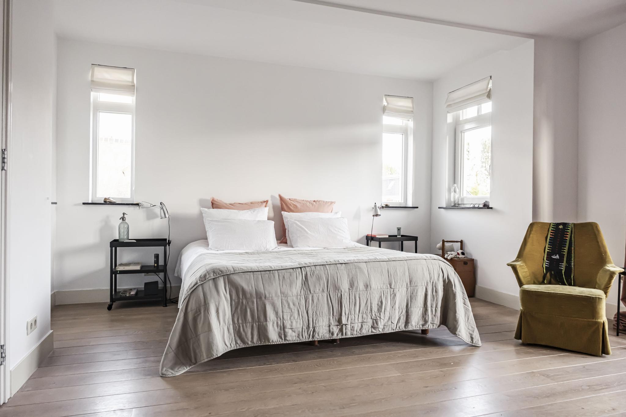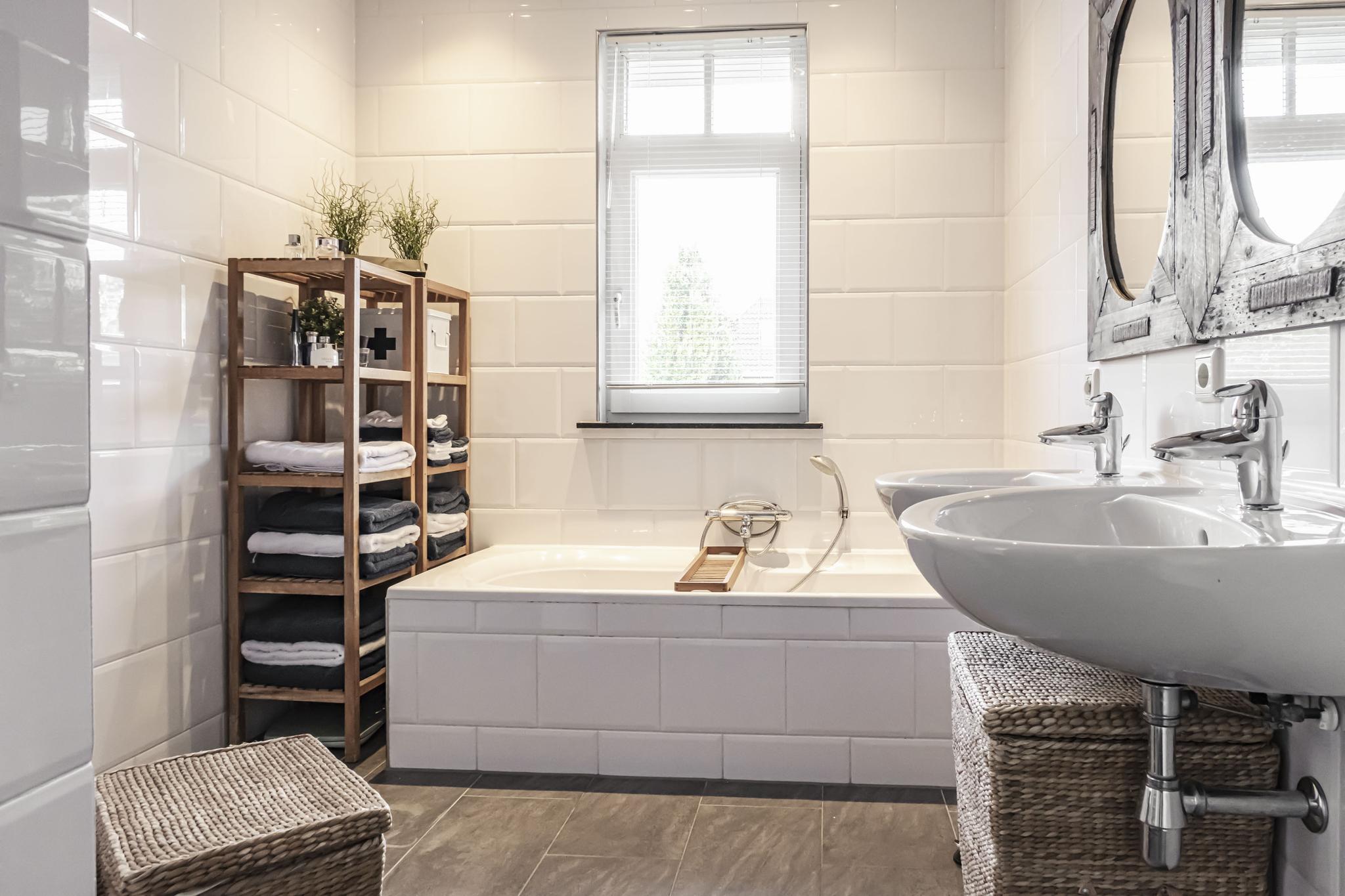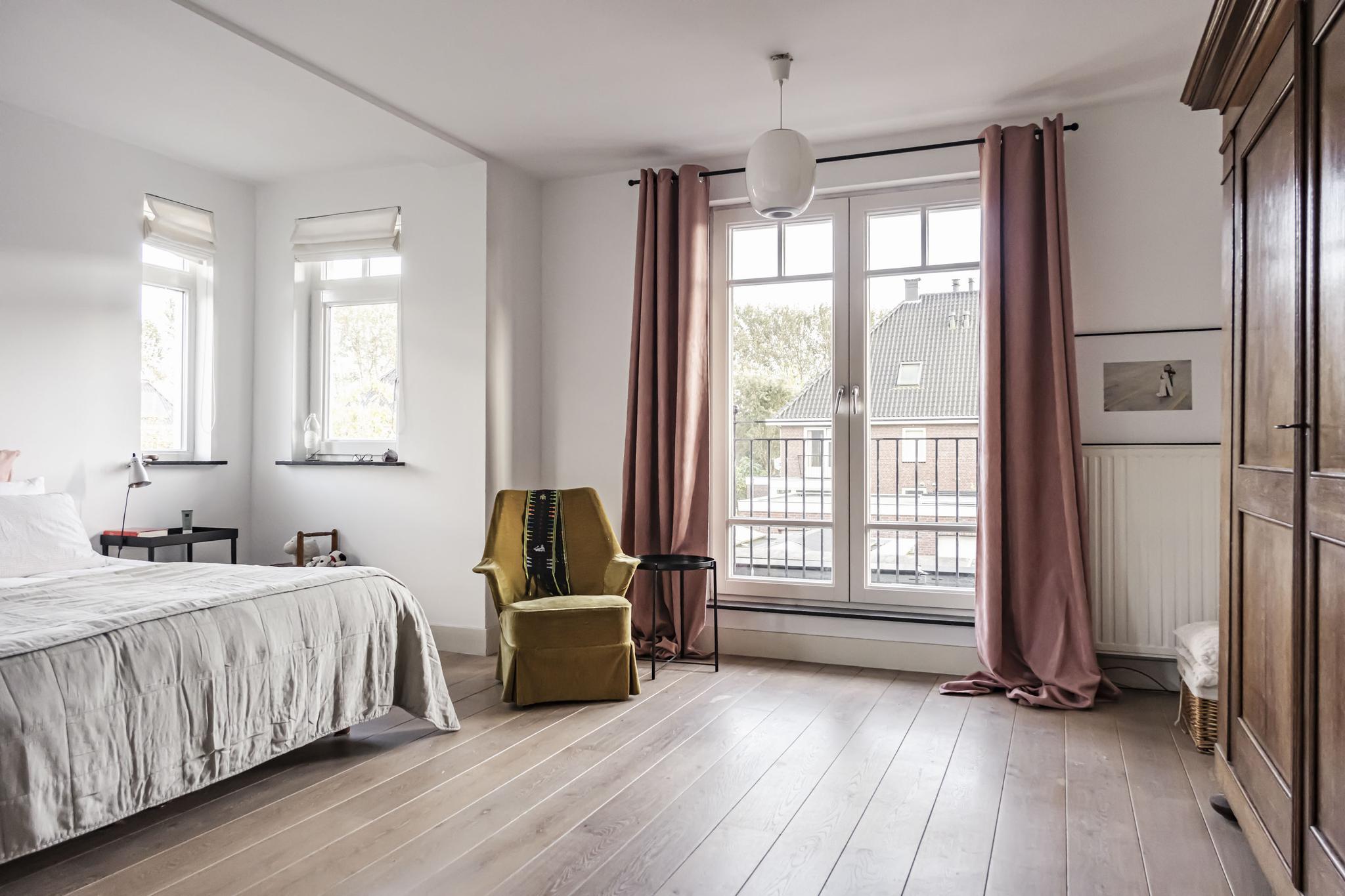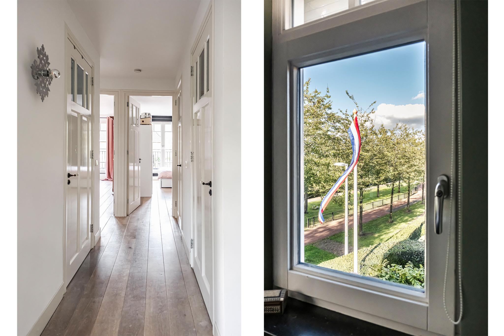1e verdieping: ruime overloop, 1e slaapkamer aan de voorzijde met ramen aan twee zijden en uitzicht op het groene wandelpad, 2e slaapkamer aan de achterzijde voorzien van Frans balkon, 3e slaapkamer c.q. master bedroom met sfeervolle raampartijen en inloopkast, ruime badkamer met ligbad, inloopdouche en dubbele wastafel, apart toilet met fontein, wasruimte met aansluitingen voor wasmachine/droger en een wasbak.