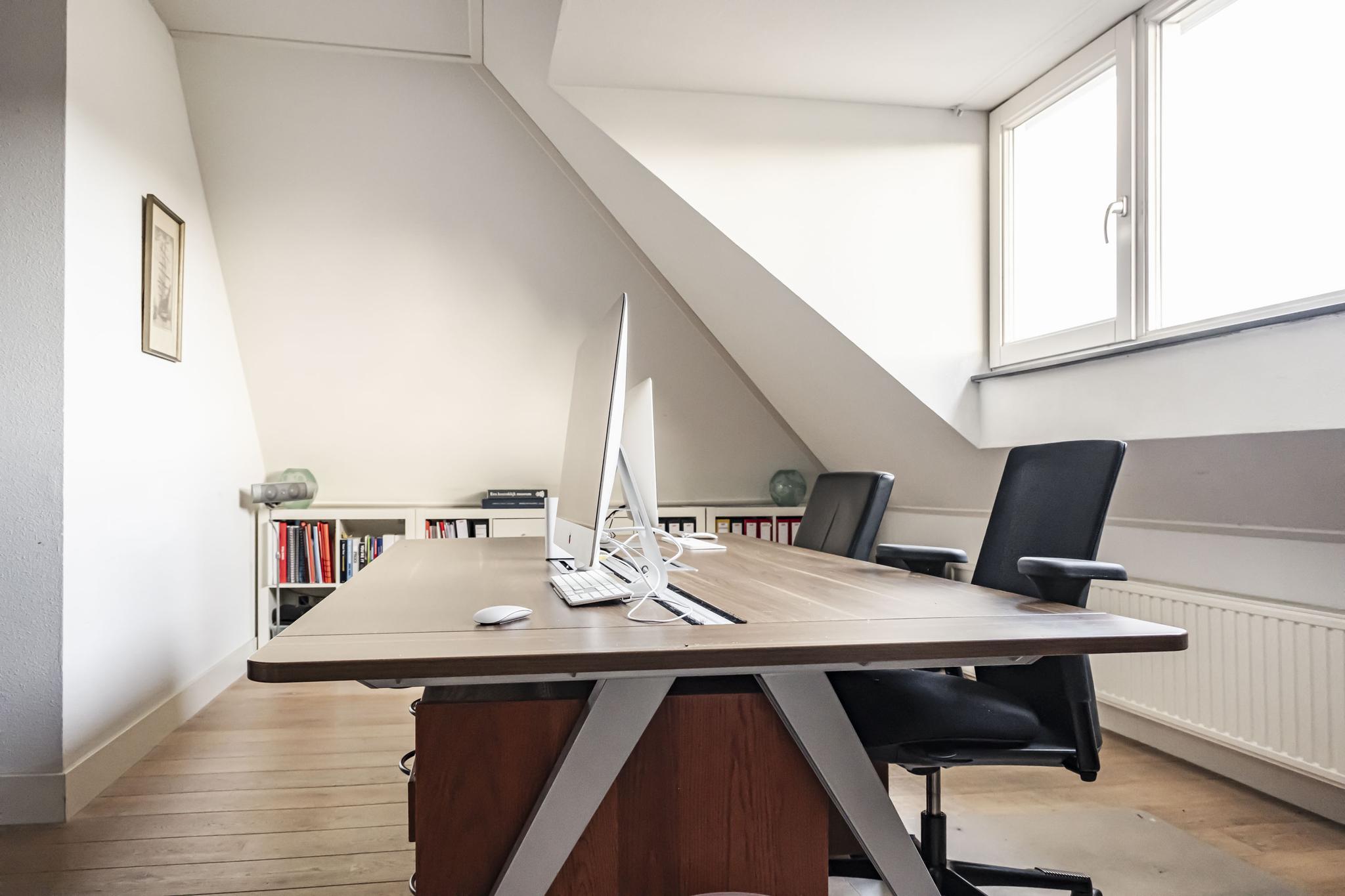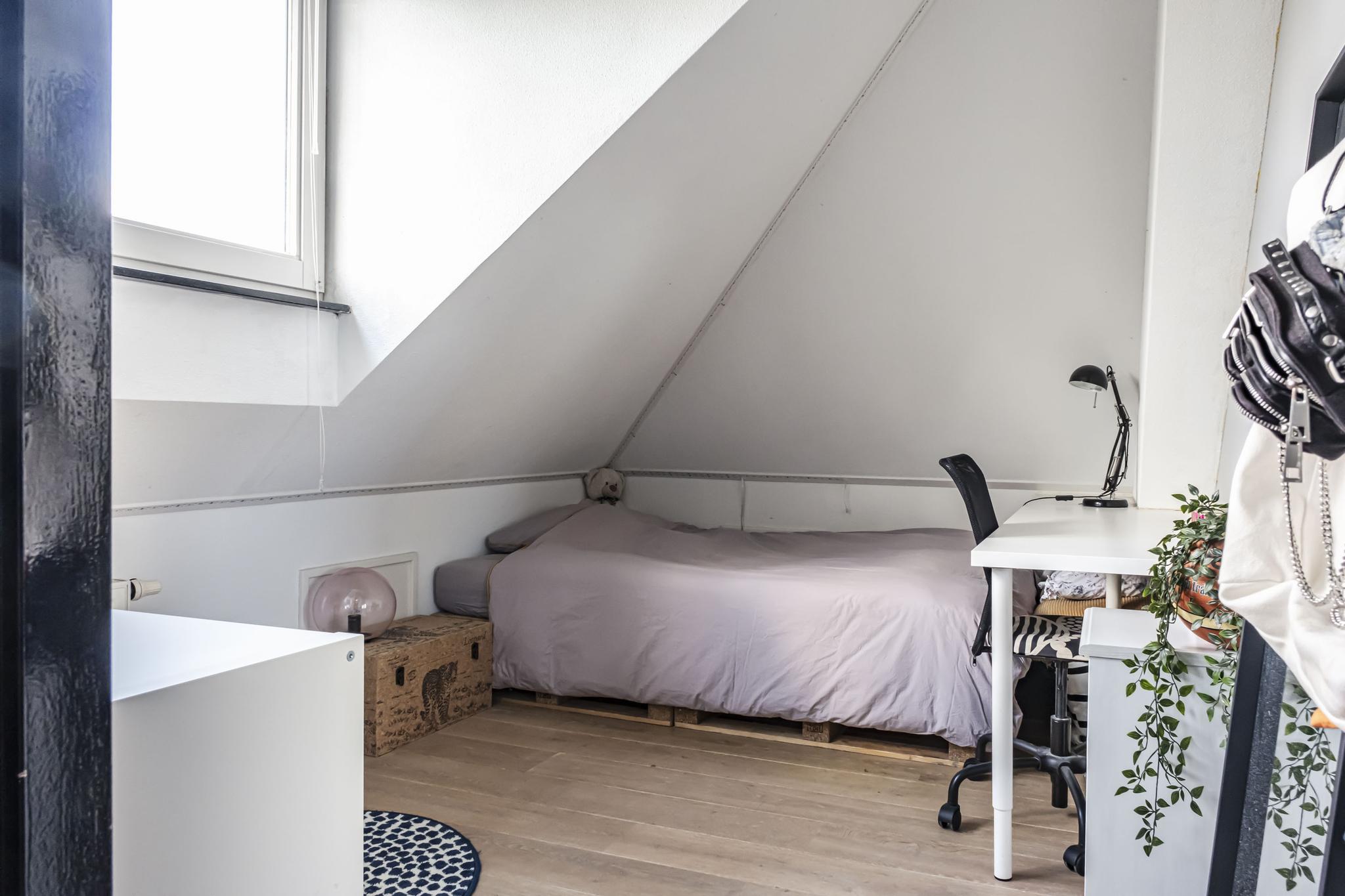 2e verdieping: ruime overloop, 4e slaapkamer aan de voorzijde met dakkapel, 5e zeer ruime slaapkamer aan de achterzijde met brede dakkapel, bergruimte achter de knieschotten, 2e badkamer voorzien van inloopdouche, wastafel, toilet en dakraam, stookruimte met CV-ketel en WTW-systeem.